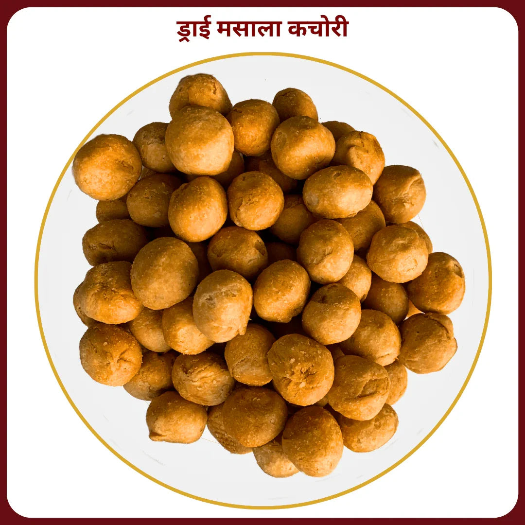 Our Dry Masala Kachori is a crispy, golden snack filled with a flavorful blend of roasted lentils, hand-ground spices, and a hint of tang. Made the traditional way, each kachori is sun-dried, fried to perfection, and sealed for long-lasting freshness.